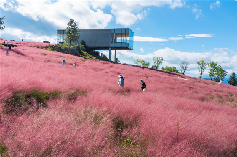 说起武隆懒坝国际艺术度假区,大伙儿都会想到它响当当的“名片”——大地艺术圣殿,到武隆不去懒坝那当白来,特别是现在正值景区内三千粉黛盛开,上百亩粉黛乱子草竞相开放,成片的粉黛乱子草连成一片片“花海”,一面粉黛摇曳一面山峰巍峨,随手一拍都是大片。