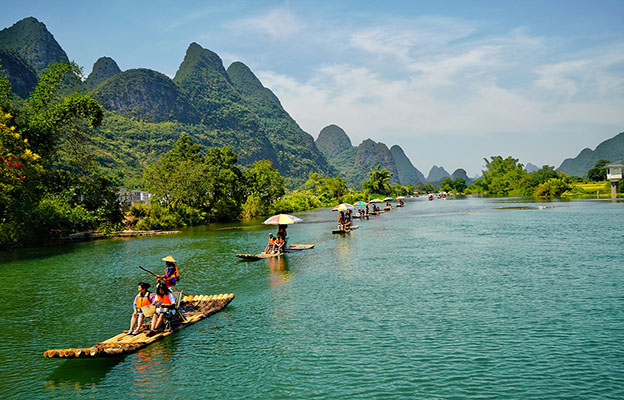 “桂林山水甲天下,阳朔堪称甲桂林”,桂林漓江景区是国家5A级景区,是世界上风景美,规模大的岩溶山水游览区之一。坐竹筏游览沿江,风光旖旎,碧水萦回,青山倒影,20元人民币背景图就在此。多么绚丽多彩的画卷,奇美的景色,让古今中外无数的文人墨客赞叹,唐代大诗人韩愈曾作“江作青罗带,山如碧玉簪”的诗句来赞美漓江。