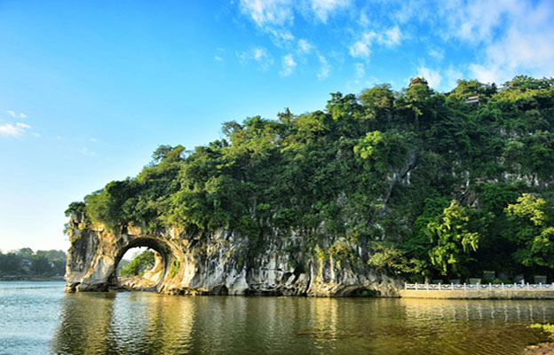 景区内的象鼻山山形酷似一头伸着鼻子汲饮漓水的巨象,是桂林出名的标志性景观之一。象鼻山原名漓山,又叫仪山、沉水山,简称象山,位于桂林市滨江路位于广西省桂林市内桃花江与漓江汇流处,是中国首批4A级景区,因酷似一只站在江边伸鼻豪饮漓江甘泉的巨象而得名,被人们称为桂林山水的象征。