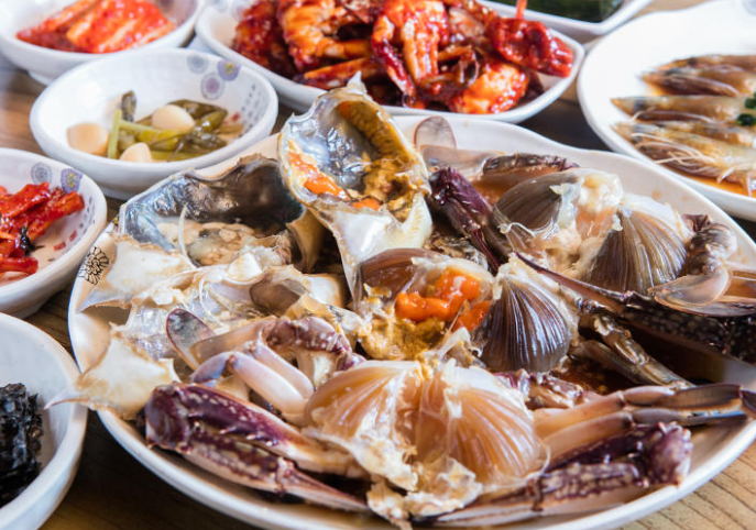 酱蟹是指用蘸了酱油或辣椒酱的酱汁腌渍的螃蟹。其中产于韩国西海岸瑞山附近海域的螃蟹个大味美,蟹黄丰富,特别是以春天3-4月出产的螃蟹最为美味。