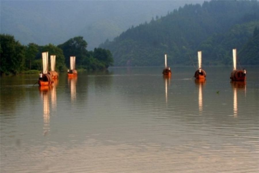 帆船是瓯江上的主要交通工具,也是瓯江流域文化的代表,作为行驶的动力“帆”在湖水的映衬下更是使帆船显得绰绰动人。湖上的船队由舴艋帆船组成的,帆船前部竖立着一支桅杆,杆上挂着白色的帆,帆船顺流用浆,逆流用篙,顺风则扬帆,帆影在云雾缭绕,飘渺袅娜中倒映江面,如梦如幻,别有韵味,相信这是云和湖特有的美景。