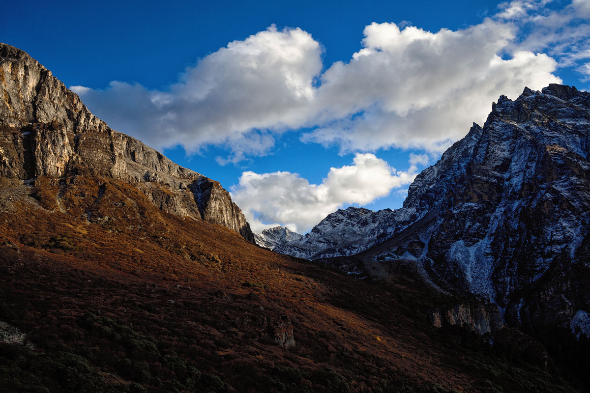 夏诺多吉雪山位于稻城县与凉山州木里县的交界处,海拔5958米,是三怙主雪山之一,排行第三。夏诺多吉雪山是“金刚手菩萨”的化身,从沟谷中看过去,雪山具有剪影一样的效果。黄昏是雪山最美的时候,裸露的岩石和冰雪被渲染得极为艳丽。 TIPS:拍摄夏诺多吉最佳位置在冲古草坪,最佳时间为下午至傍晚夕阳时分。