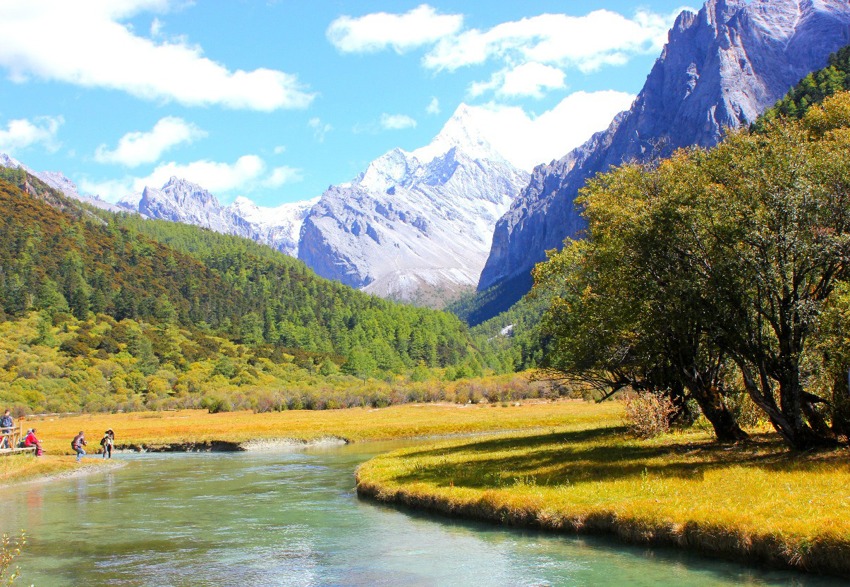 洛绒牛场是亚丁自然保护区著名景点之一,海拔4150米,是附近藏民放牧的牧场。洛绒牛场背靠三座神山,是观赏三怙主雪山的最佳地点。牛场周围是连绵的高山草甸,春夏时节草甸上野花盛开,漫山遍野,非常壮观。TIPS:1.贡嘎河从牛场穿过,成群的牛羊在河边和山坡上悠闲吃草。徒步转山的背包客常在此安营扎寨,观赏拍摄神山日出日落。2.洛绒牛场是通往牛奶海,五色海的必经之路(单边步行3.5小时左右),另外小转神山仙乃日也要经过这里(由冲古寺出发,经洛绒牛场绕仙乃日转一圈,全程大概20公里)。