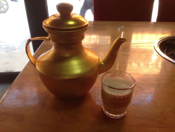 酥油茶是藏族的主要饮品,一般与糌粑一同食用。酥油茶易消化、耐饿解渴,是最好的营养和热量补充剂,甚至可以治疗感冒和初到高原的不适反应。