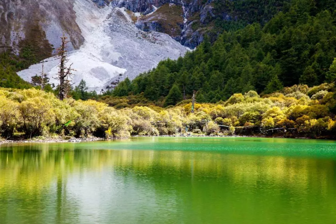 珍珠海在藏语中称为“卓玛拉措”,是仙乃日的融雪形成的海子,面积约0.1平方公里。密林中的珍珠海如一颗镶嵌在莲花宝座上的绿宝石,碧波荡漾,倒影着五彩斑斓的世界,令人目眩神迷。 TIPS:1.游客需尊重当地藏民风俗习惯,勿在卓玛拉措圣湖洗漱。 2.龙龙坝——冲古寺,约3公里,徒步约1小时;冲古寺——珍珠海,约1.5公里,徒步约40分钟;珍珠海——洛绒牛场,约7.5公里,徒步约3小时,洛绒牛场到五色海徒步约2.5小时。3.从冲古寺草坪到珍珠海,全程为上坡路,路面已铺设木质栈道,约三公里,徒步约40分种。