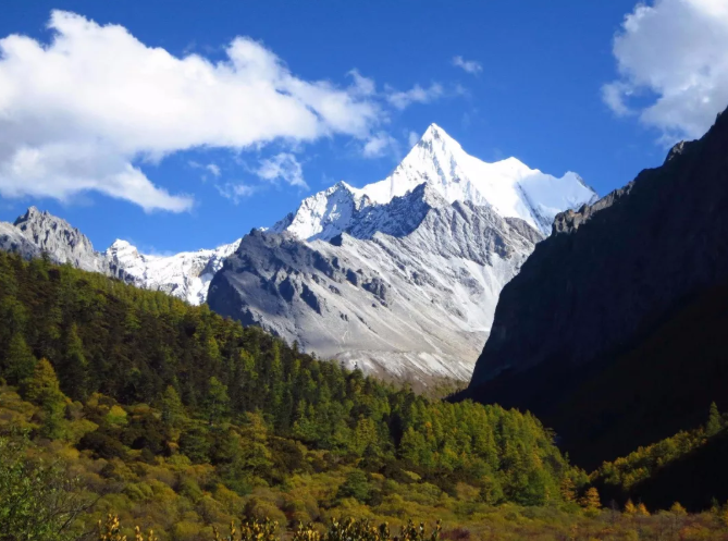 央迈勇藏语意为文殊菩萨,海拔5958米,为亚丁三怙主雪山的南峰,位列三怙主之首。由群山环绕着的宽阔峡谷间,森林、草地、溪流和睦地各守一方,央迈勇峰则娴静端庄,神圣而庄严,这气势莽莽的自然景观,俨然一处不食人间烟火的世外桃源。TIPS:洛绒牛场是驴友公认的央迈勇最佳拍摄地,其中“日照央迈勇”的拍摄时间为夏季早上6:00,秋季早上7:10分,也可以利用柔和的月光拍摄央迈勇童话般的夜景。