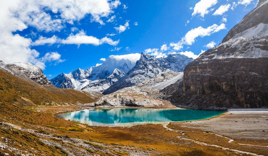牛奶海又叫洛绒措,位于央迈勇神山脚下的山坳里,是一个面积不大状如水滴的古冰川湖。四周雪山环绕,湖水清莹碧蓝,湖畔有一圈乳白色环绕,故称牛奶海。牛奶海是亚丁地区的圣湖之一,海拔4600米。湖泊形状象一滴眼泪,站在高处向下看,她就像一块纯净的蓝松石嵌在雪山群峰中。TIPS:游客从洛绒牛场可租马前往牛奶海,往返马帮所需时间约3小时。从洛绒牛场通往牛奶海的路较为崎岖,中途部分路段需游客徒步,因此对游客体力具有较高要求。牛奶海海拔较高,气温偏低,山顶风大,建议游客提前做好保暖准。