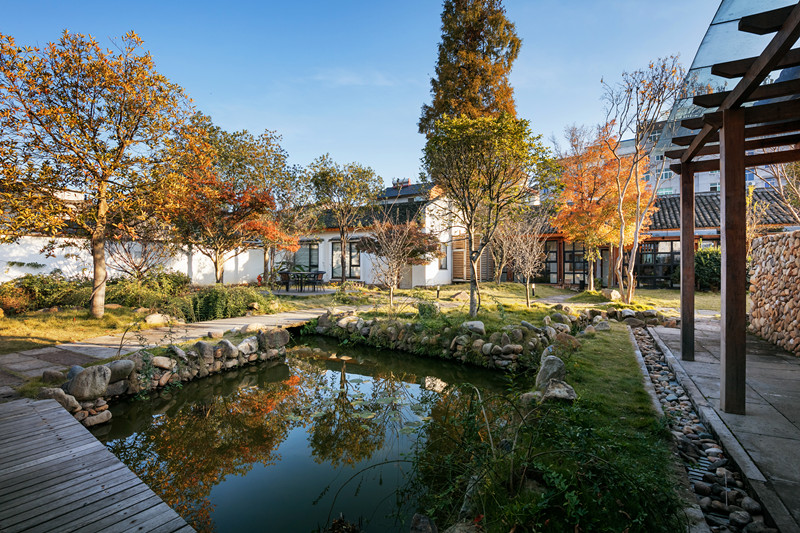 隐藏在具有1800年历史的松阳老街上,茑舍还原了一片丽江山水中的诗意田园,藤萝爬上了院墙,繁茂花树环绕在庭院里,池塘清澈映照湛蓝的天空。在客栈舒适自然的休闲大厅里,品尝当地的小菜,烹煮一壶清茶,悠闲自在地享受闲适的花园时光。