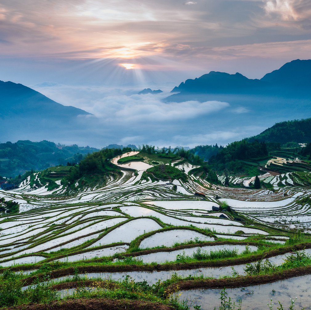 云和梯田跨越高山,丘陵,谷地三个地质景观带,最多有700多层,是华东最大的梯田群。整个梯田景区面积巨大,分为白银谷和九曲云环两大游览区域。白银谷。更受游客和摄影爱好者亲睐除了观赏梯田,还可以在七星墩守候云海日出;在坑根石寨看当年银矿留下的古井,老房子。最佳游览时期是5 - 6月播放耕时节,10月稻谷成熟时节和冬天下雪时节,景致分外迷人。通常下午到九曲云环,然后前往白银谷,在景区内七星墩(梅竹村)附近的农家乐留宿一晚,方便第二天一早看日出。