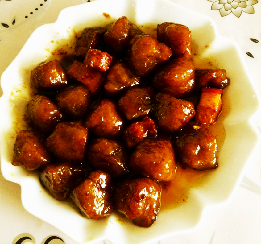 山粉圆也称山粉丸,满堂红。用山粉,芋艿拌入煮鸡肉卤汁,加碎肉,佐料和匀,撮入蒸笼炊熟,食用时再切成片,条或粒。山粉以蕨根粉为正品,葛粉次之,现多用番薯粉。山粉圆是松阳农家除夕夜少不了的一盘美食,寓祝着一家人来年美满幸福,团团圆圆。每逢大小喜宴最后上的一盘也便是山粉圆,其寓意着圆圆满满,皆大欢喜。想吃正宗山粉圆,还得在过年时的松阳农家。