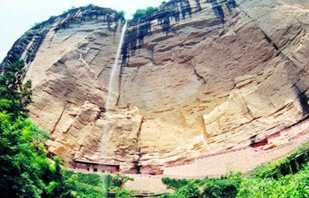 武夷山水帘洞原名唐曜洞天,位于丹霞嶂东面,是武夷山最大的岩洞,素有“山中最胜”之称。水帘洞岩壁高宽各数十丈,上凸下凹,形成岩穴。洞内敞亮可容千人,依崖散建数座不施片瓦的庙宇。峰顶清泉垂落而下,随风飘洒。