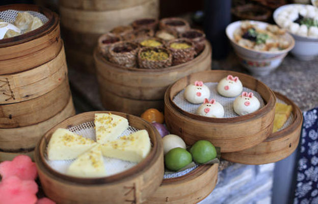 数不尽的糕点熟食,犹如四季不败的花市:芝麻糕、花生糕、胡桃糕、椒盐糕、青糕等。青团、撑腰糕、鲃鱼、袜底酥 、万三蹄、 阿婆菜、 青团 、万三糕 、莼菜 、虾糟 、三味圆 、阿婆茶和茶点