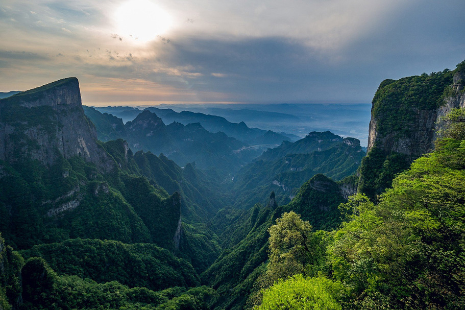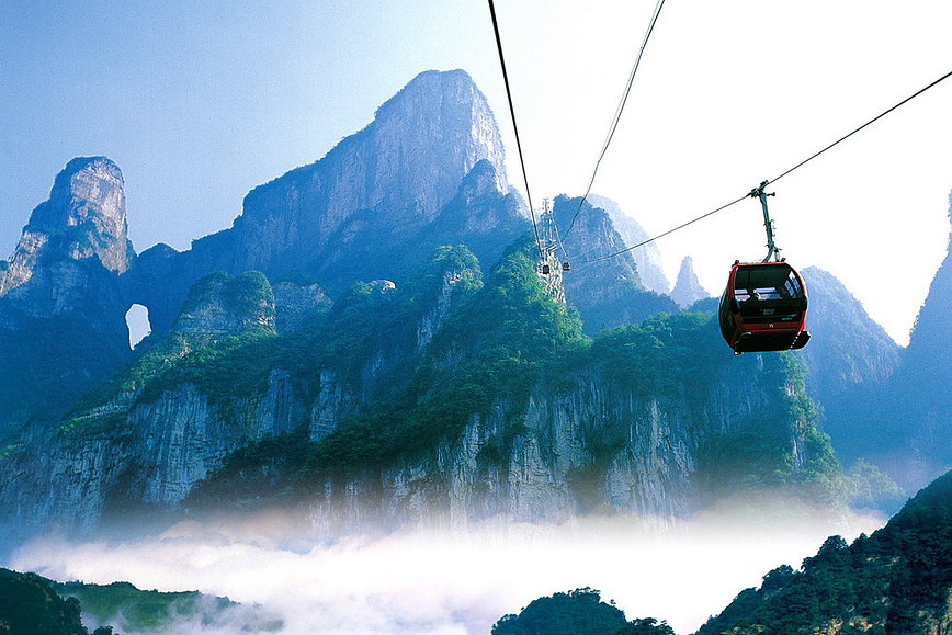天门山索道是这里呈现给旅行者们的第一次震撼:索道全长超过7公里,高低落差超过1000米,这也是目前世界最长的观光客运索道。由张家界市中心出发,直达天门山顶,无数高难度索道技术的成功应用,让天门山索道成为了张家界的最伟大的人工奇景之一。搭乘索道上山,看着车厢外的闹市喧嚣逐渐变成人迹罕至的绝壁和森林,最终到达云雾缭绕的山顶,28分钟的单程时长,却像是带领游人进入了“另一个次元”。