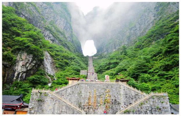 张家界天门山国家森林公园——简称:天门山(门票258元+3元保险。天门山文化底蕴深厚,有“武陵之魂”之称,更有湘西第一神山的美誉,它兼峰、石、泉、溪、云、林于一体,集雄、奇、秀、险、幽于一身,被誉为空中原始花园。有亚州最长的天门山索道,云雾缭绕的天门仙洞,99道弯世界公路奇观(号称通天大道)、李娜别墅、鬼谷栈道、玻璃栈道、鬼谷兵盘、云梦仙顶、天门山寺、灵泉院、木石之恋等著名景点),此景区可按排大半天的游玩时间。