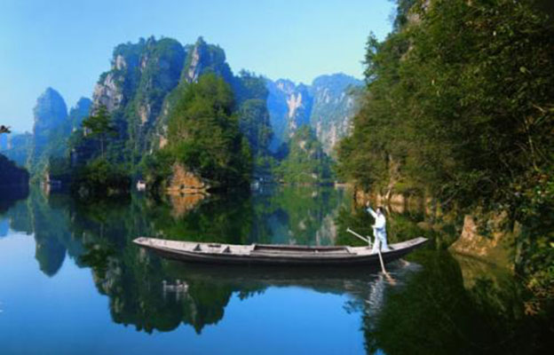 张家界宝峰湖(门票96元,被称为“世界湖泊经典”,主要景点由宝峰湖和鹰窝寨两大块组成。其中宝峰湖、奇峰飞瀑、鹰窝寨、一线天被称为武陵源“四绝”。是武陵源风景名胜中的精品景点,也是张家界核心景区惟一以水为主的旅游景点。曾作为2001年张家界国际森林保护节文艺表演的天然布景,在中央电视台、湖南电视台多次亮相,骤然间成为海内外游人心中胜景。它是一座罕见的高峡平湖,四面青山,一泓碧水,风光旖旎,是山水风景杰作),此景区游玩时间为二小时。
