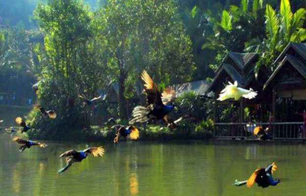 交通:在景洪市景咏饭店对面的农行正门公交站,乘坐花卉园-森林公园的公交车,至终点下车即是。8:00-12:00每小时一班,下午发车时间为15:00、16:30、17:30,5元一人。