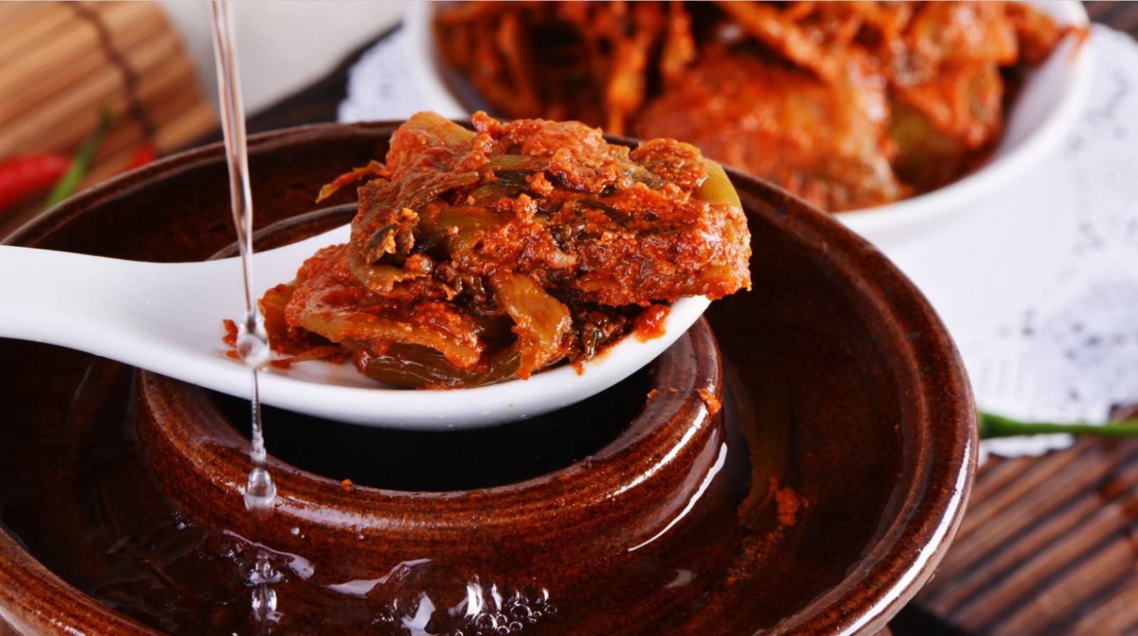 独山盐酸菜以其酸、辣、甜、咸俱全的独特风味成为全国的八大腌菜之一,其中最重要原料之一是用贵州"三名椒"之首的独山辣椒加工成粉,辅以上等青菜、糯米甜酒、冰糖、白酒,加上少量的纯碱制成。