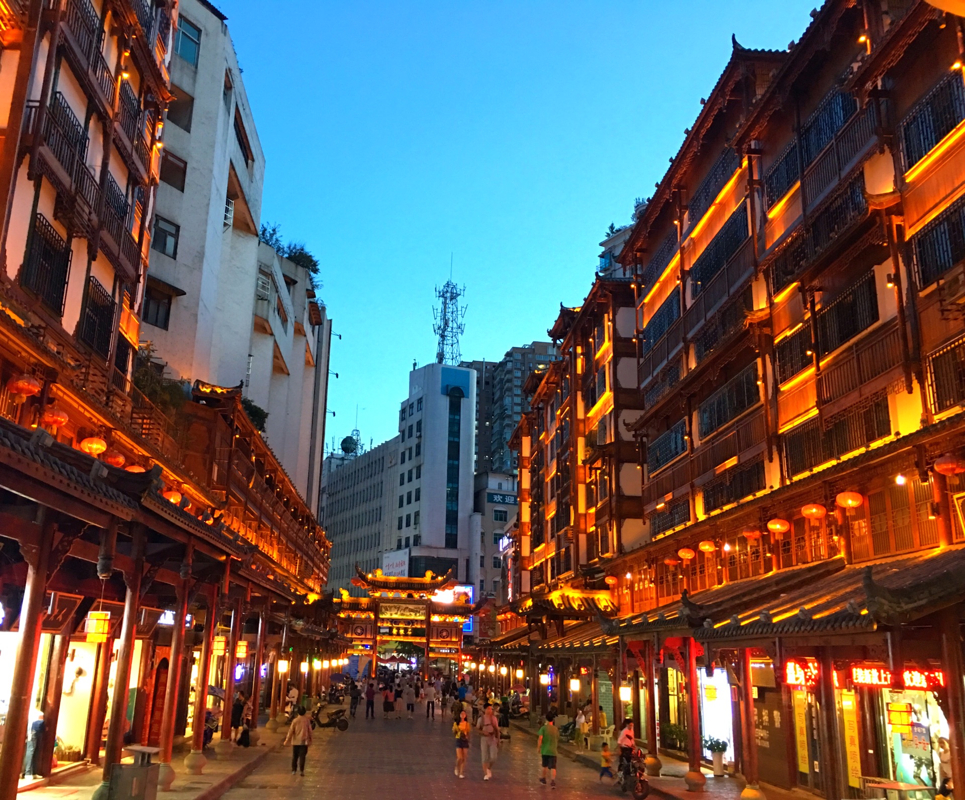 石板古街始建于明代,街长330米,共有街坊88间,街房建筑黛瓦红柱,朱壁花窗,高低错落,层次分明,古朴典雅,是市区保留较为完整的古建筑群。目前已开辟为旅游商品一条街。