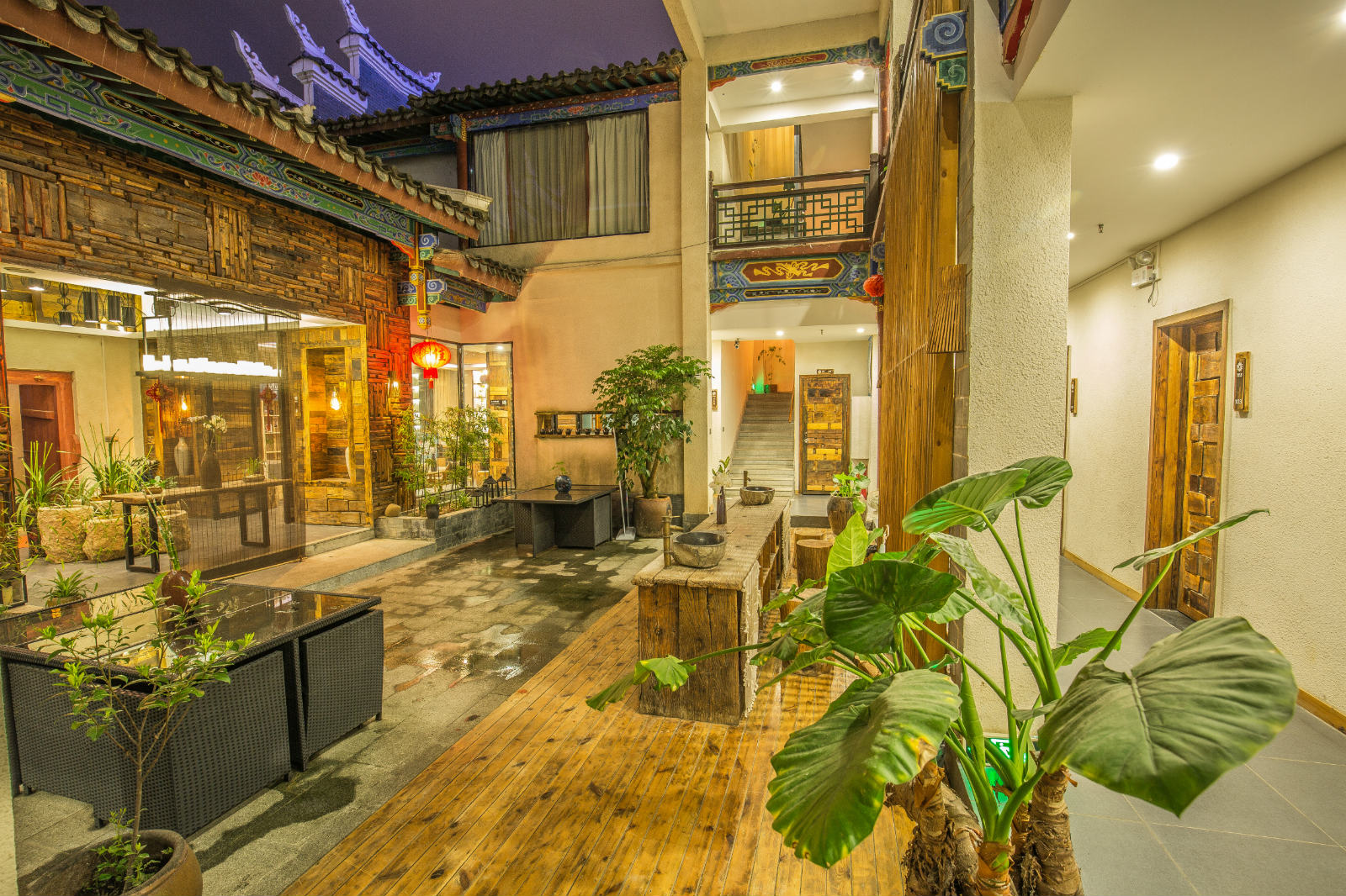 酒店大隐于市,进入后却别有洞天,灰砖黛瓦的仿古建筑,集山川风景之灵气,极富小资情调的庭院雅致古朴,木质客房布置温馨,整洁舒适。