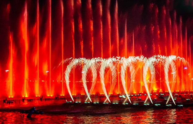 秋水广场位于赣江之滨,和对面的滕王阁隔江相望。开放式的广场上有一座亚洲最大的音乐喷泉,每当夜幕降临时,喷泉在灯光和音乐的配合下变幻出优美的造型,正应了《滕王阁序》中那句“落霞与孤鹜齐飞,秋水共长天一色”。是夜游南昌非常值得推荐的选择之一。
