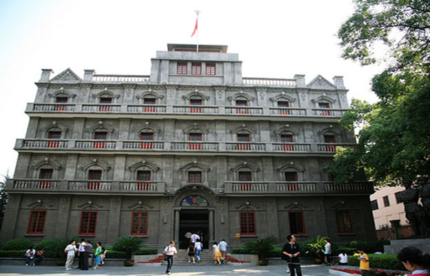 这幢外观呈银灰色,座南朝北,楼高四层的回字型建筑,原为江西大旅社,始建于1922年,1924年建成,采用中西合壁的建筑风格,外观以具有西洋风格的水泥浮雕装饰门窗,楼内有一宽大的天井,天井里放有四口防火用的大水缸,显示出中国传统建筑的独特格局。