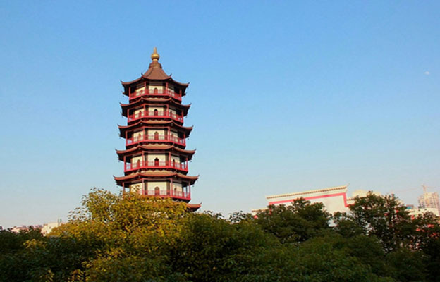 绳金塔坐落在南昌市西湖区绳金塔街东侧,原古城进贤门外,始建于唐天祐年间(公元904~907年),相传建塔前异僧惟一掘地得铁函一只,内有金绳四匝,古剑三把(分别刻有“驱风”、“镇火”、“降蛟”字样)还有金瓶一个,盛有舍利子三百粒,绳金塔因此而得名。
