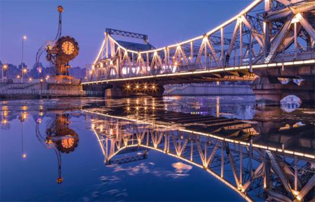 解放桥是一座全钢结构可开启的桥梁,建于1927年。桥长97.64米,桥面总宽19.5米。它不仅是天津的标志性建筑物之一,也是连接河北、河东、和平三区,沟通天津站地区的枢纽桥梁。解放桥附近原有一座老龙头桥,是法租界当局要求清政府于1902年修建的。解放桥上曾留下过许多故事和传说,不仅有解放军用一个连的兵力、仅用20多分钟时间攻克大桥的佳话,也上演过一些人纵身桥下寻短见的人间悲剧,还先后拍过《马永贞》、《雷雨》、《大决战之平津战役》、《被风吹过的夏天》等影视剧。