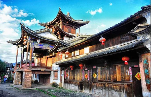 诺邓,是一座有着上千年历史的白族村寨,一千年来,村名从未更改,沿袭至今,古镇内的牌坊是滇西现存最大的古木牌访。村中保留着大量的明、清两朝建筑和著名的玉皇阁道教建筑群。村中高大的古黄连木,树高多达三四十米,最古老的树龄已有800多年。舌尖上的中国有一期专门介绍了诺邓的火腿,这也是诺邓一大亮点。