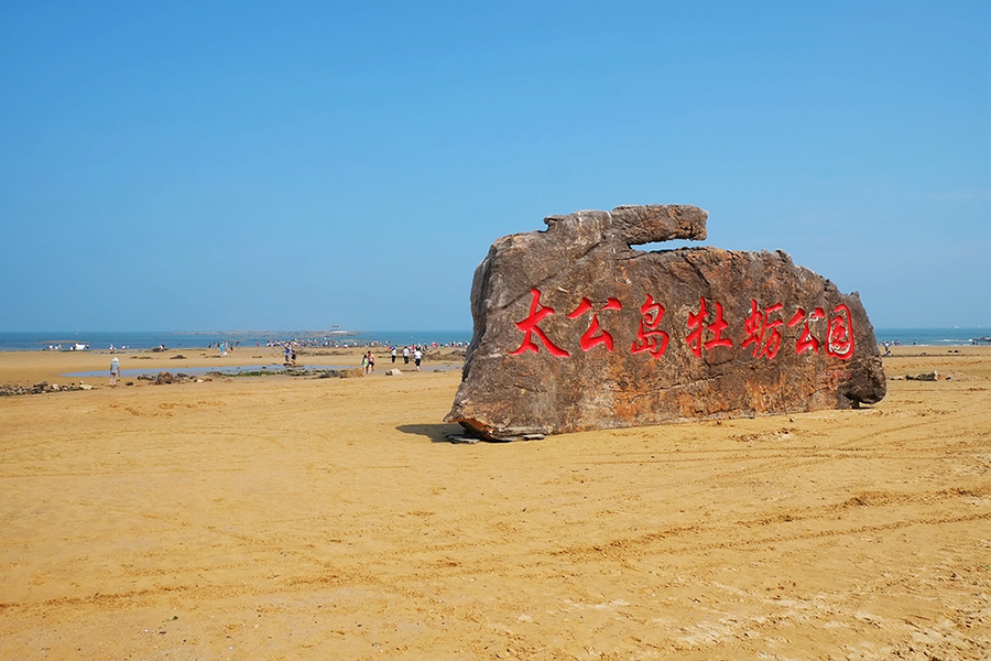 太公岛是一座潮汐岛,平时有一半的海岛都隐藏在海面之下,只能看到岛顶和一个逃生塔,在涨满潮的时候甚至整座岛都会被淹没。在退潮时,整座岛礁显露出来,水浅的时候可以登岛赶海,岛上的牡蛎资源很丰富~