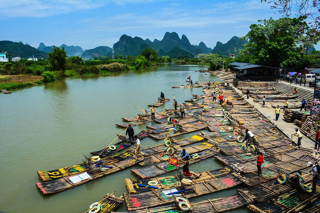遇龙河是漓江在阳朔境内的最长支流,有着阳朔标志性的山河美景。遇龙河两岸山峰连绵起伏,树木葱郁,一直有着“小漓江”的美誉。此外,景区内有5个码头提供漂流服务,游人可乘竹筏沿河漂流,一览两岸山水田园风光,极具“人在画中游”的优美意境。