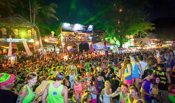 苏梅岛旁的帕岸岛是世界三大满月派对胜地之一,每到月圆时分的“满月”期间,来自世界各地的背包客和电子音乐迷,都会成群结队来此朝圣。在前往参加派对的道路两侧,每个店铺门前都会摆满各种酒桶和各式酒品饮料。人们在音乐的熏陶下,在桶酒的催化下,无拘无束率性狂欢到天明。