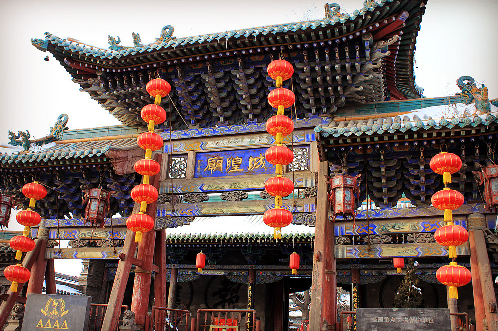 城隍庙建于明朝初年,是目前中国保存最完整的城隍庙之一,除正殿和寝宫外,由六曹府、土地祠、灶君庙、财神庙四部分组成,庙内建筑与琉璃艺术是城隍的最大特色,从殿宇到楼阁,结构精妙,满布殿宇屋顶的琉璃以蓝、绿为主,黄色相间,组成青冷色调显出一种神秘的意境,仙人,走兽、龙吻背刹造型精美,色泽如初,是清代琉璃工艺的杰出代表。