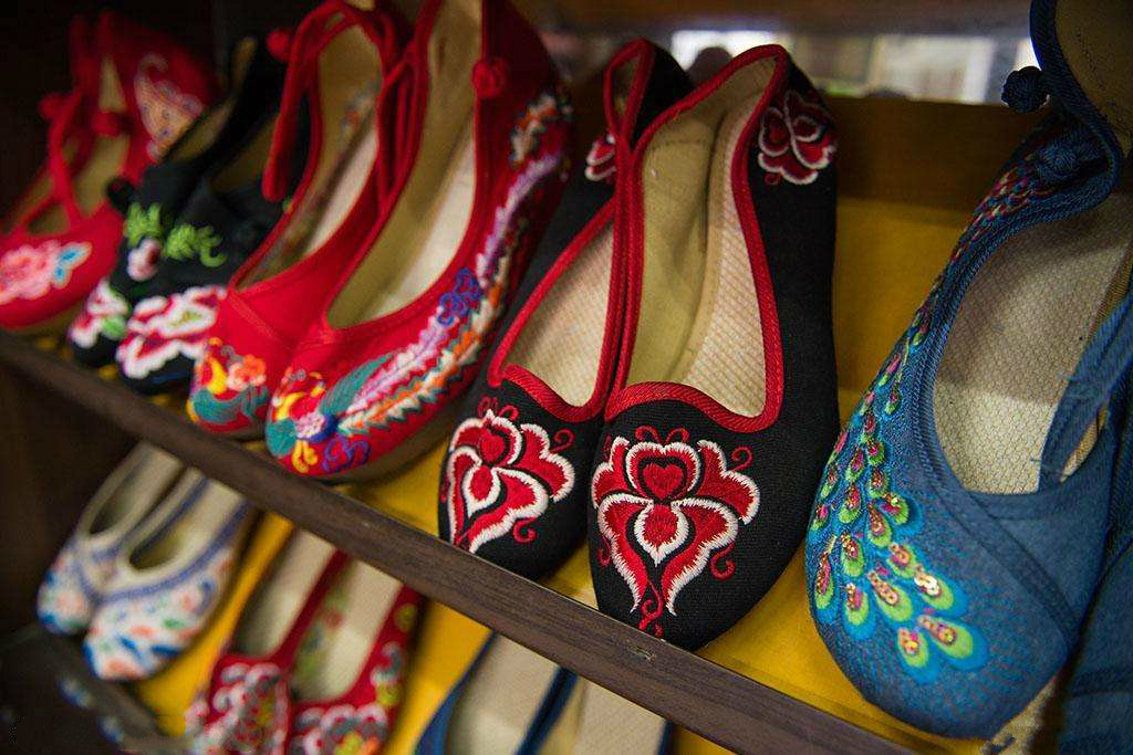 平遥布鞋是当最受欢迎的特色产品,纯手工制作,款式繁多,穿起来柔软舒适。
