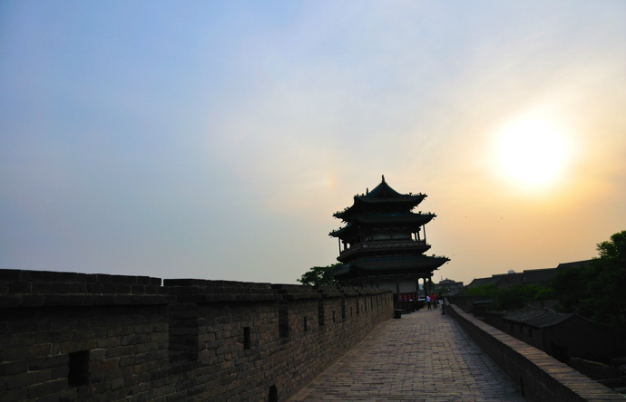 平遥古城墙始建于明朝,是中国保存最好的古县城城墙,距今已经有600多年的历史,古城墙共有六座城门,由瓮城、城楼、角楼、点将台等建筑组成,登上城墙,可看到墙顶望孔、射孔、垛口、铁炮等御敌设施,沿着城墙游走,古城下的生活情貌尽在眼底,尤其在落日的笼罩下,恍惚有种穿越时光之感。