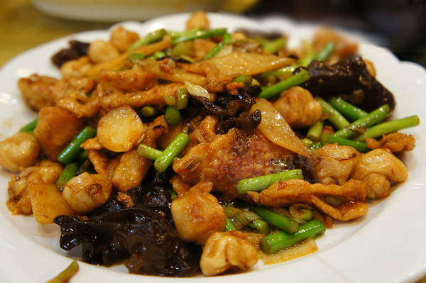 过油肉用精选瘦肉经过上浆、拉油,配天然黑木耳、蒜台、葱头,再配上山西老醋调味后炒制而成。菜品色泽金黄鲜艳,味道咸鲜闻有醋意,质感外软里嫩,是难得的美味佳肴。