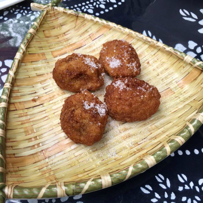 泡泡油糕其渊源可上溯至唐代的烧尾宴名点“见风消”,用水烫面、枣泥和豆沙为馅油炸而成,色泽金黄,外焦里嫩,绵软香甜。