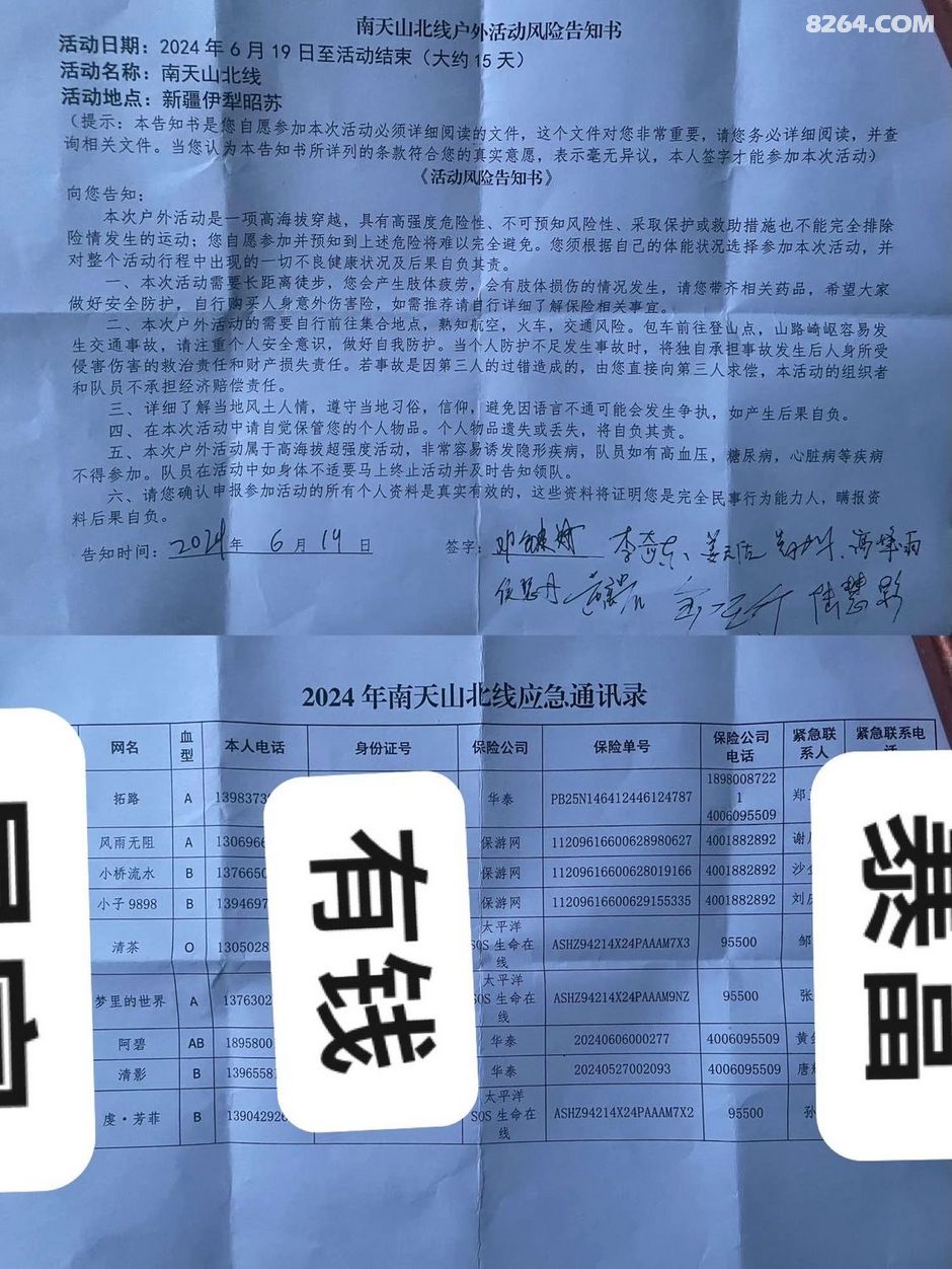 2024年6月18日,重庆、辽宁、广东、黑龙江、安徽、浙江六省区9名队友伊宁汇合,新朋老友见面会签署活动免责协议。