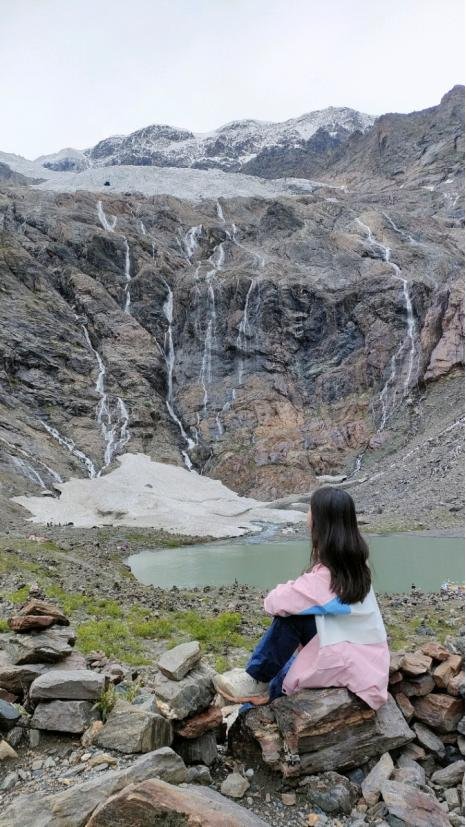 到了冰湖垭口的时候,我已经没有力气了。就想着在上面看一下就好了,但是我朋友说,你一定要下去看一下。于是我强打精神走了下去。