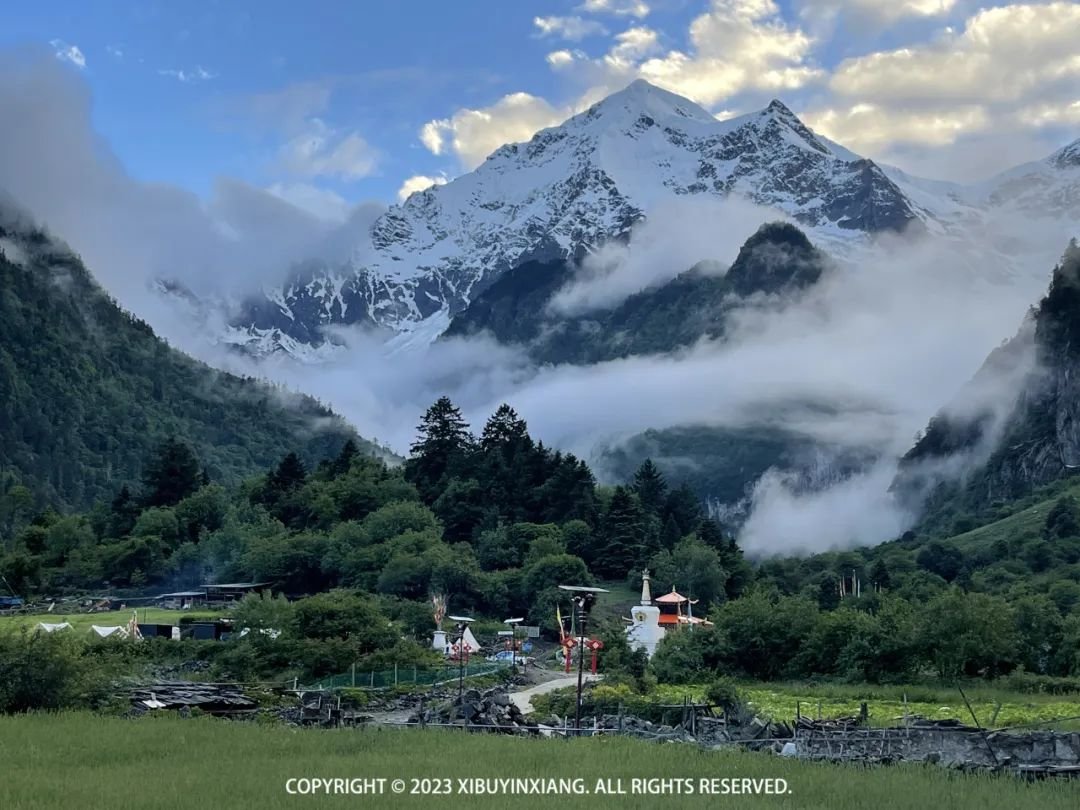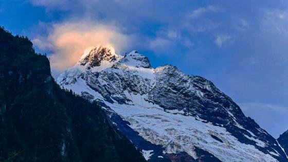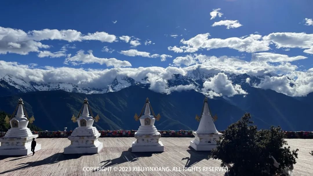 刚下大巴车,一股刺冷的寒意,便穿透了我。雪山都来不及看,我就赶紧回房间换了衣服。却在一个不经意的抬头之间,被云层上面露出一点的雪山尖,狠狠震撼。
