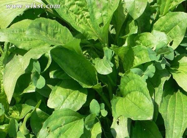 车前又叫车轮菜、牛舌草,叶片像个小勺,比较光滑,叶脉有五条或七条向外突出。这种野菜性寒,有利尿清热的作用,可治肝炎、胃炎等,含有丰富的维生素和矿物质。