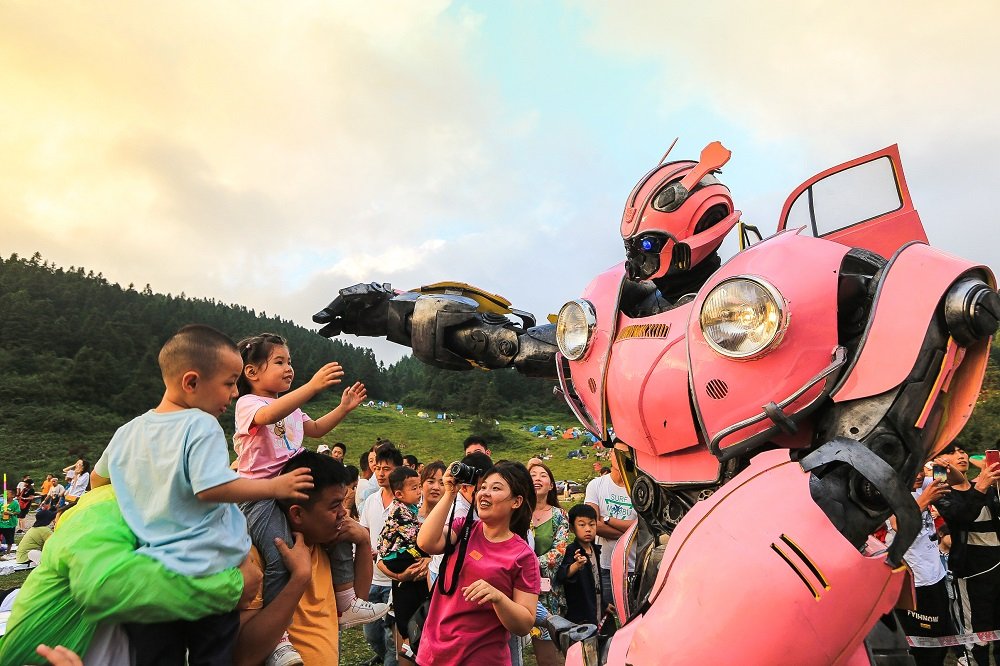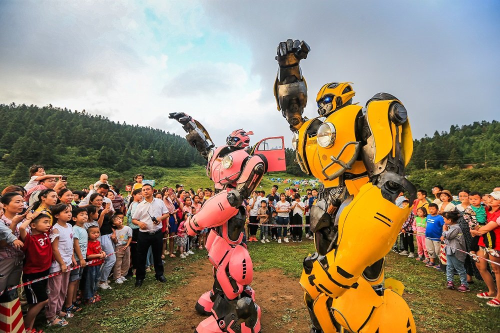 孩子们争相与“变形金刚”握手