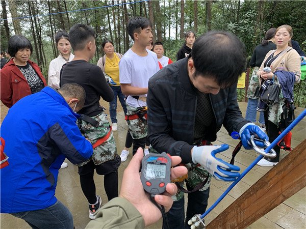 丛林高空,一览众山小。在武隆万峰呐溪原乡景区,记者看到,前来游玩挑战各种高空项目的游客络绎不绝,“计时开始!”随着一声令下,一场精彩刺激的飞拉达竞速赛正如火如荼的上演。国庆期间,万峰呐溪原乡景区推出了飞拉达、玻璃迷宫、飞跃丛林竞速活动,在限定时间内完成活动挑战,便可获得丰厚礼品,吸引了众多旅游达人前往挑战。