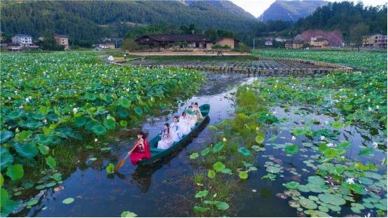 大田湿地人家是一处由古村落度假区、荷莲文化展示区、荷花湖观光区、自行车骑行区、步游道休闲区、木棕河漂流区和水上游乐区等娱乐项目组成的乡村旅游目的地,游客可赏湖岸百花争艳,任湖内柳舟穿行,看藻丛游鱼戏逐,享古寨原生态生活、玩水上游乐竞技的乐趣。