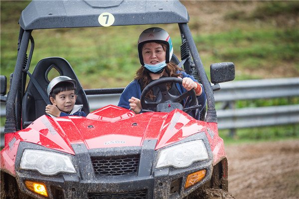 其实,在这么一个风景秀美的地方,还有众多有趣好玩的休闲娱乐项目。国庆假期,武隆仙女山就迎来众多亲子游家庭,骑马、射箭、卡丁车、越野车、小火车、玻璃水滑道等特色休闲娱乐项目受追捧,吸引众多游客打卡“遛娃”,享受其乐融融的亲子时光。