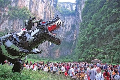2014年《变形金刚4》也是在天生三桥取景,现在景区内还摆放了两台变形金刚的模型。