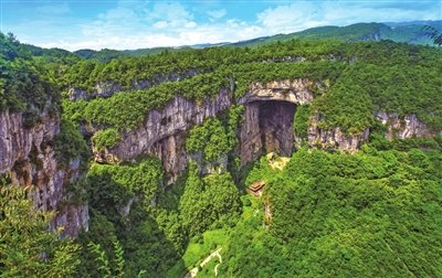 所谓天生三桥,是由天龙桥、青龙桥、黑龙桥组成,之间有青龙天坑、神鹰天坑两个天坑,形成了“三桥夹两坑”的世界奇特景观。