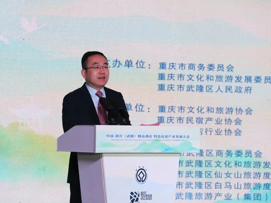 侯玉峰在致辞中表示,武隆隆重举办精品酒店、特色民宿产业发展大会,既是“第三次创业”的具体举措,又是落实全市打造旅游业发展升级版的生动实践,必将引领武隆旅游走向更加美好的明天。市文化旅游委将一如既往,大力支持武隆做精旅游产品,做大市场规模,加强品牌营销,推动武隆文化旅游高质量发展。