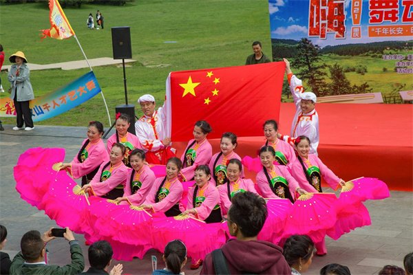 (图/王俊杰)将舞台搬到大自然,通过舞姿展现积极向上的生活态度。6月4日,武隆仙女山景区阳光明媚,晴空万里。以“千年长安·印象武隆”为主题的舞动武隆2021年千人才艺大赛,在仙女山大草原隆重举办。来自陕西西安的文艺爱好者,不惜驱车上千里抵达重庆仙女山,开展了一场别开生面的文艺表演大赛。