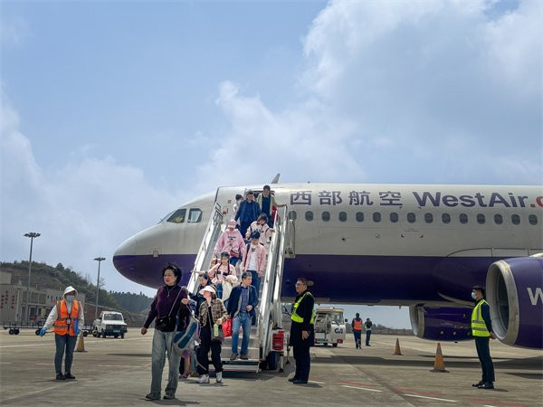 4月15日中午12:30,一架航班号为PN6526的空客A320飞机,搭载着179名南京包机乘客,平稳降落于重庆仙女山机场。下飞机后,远道而来的南京游客们将在接下来的5天4晚,开启重庆武隆深度游旅程。据了解,这已是今年4月以来第三批南京直飞仙女山包机深度游超150人的航班,而这种航班也将持续到今年10月。
