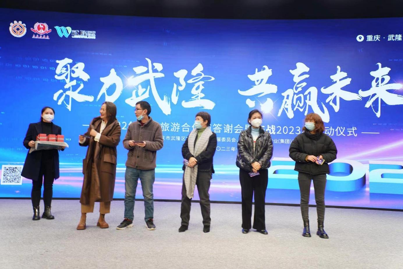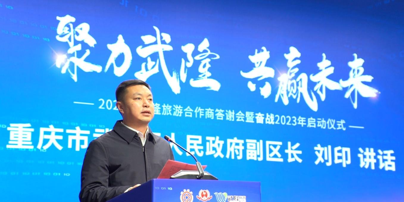 聚力武隆,共赢未来。1月10日,2022年武隆旅游合作商答谢会暨奋战2023年启动仪式,在重庆国际文旅之窗成功举办,武隆区人民政府副区长刘印出席活动并讲话。武隆区文化旅游委、区旅游产业(集团)公司等相关部门领导,旅行商、电商平台、研学机构等近100家渠道商代表,新华网、中国新闻社、央广网、国际在线、网易新闻等10余家知名媒体欢聚一堂,共同总结2022年大家作出的努力和成绩,展望2023年旅游市场光明前景。